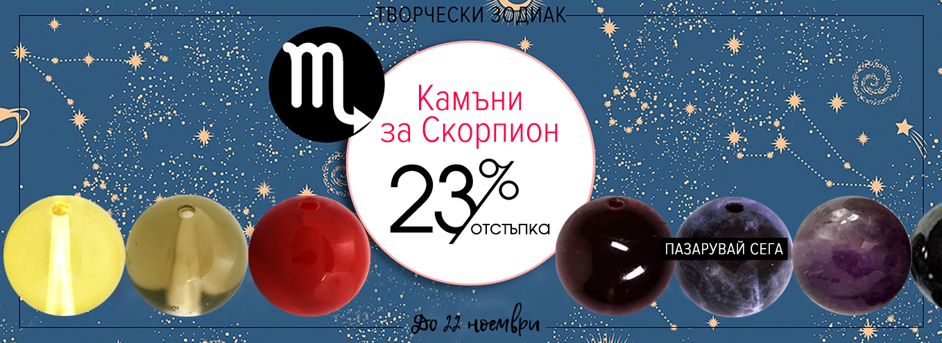 Творчески зодиак е категория със специално избрани естествени камъни, според настоящата за месеца зодия. Тук ще ги откриете с изкушаващо намаление от 23%.