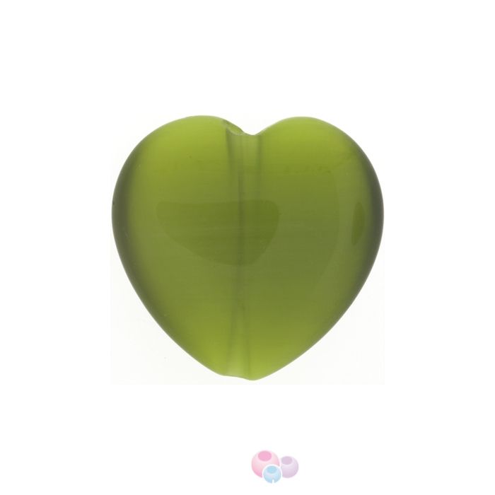 Мънисто с ефект на котешко око, Цвят: оливин, Материал: фибростъкло, Форма: сърце, Размер: 20х20 мм, Посочената цена е за опаковка от 4бр.