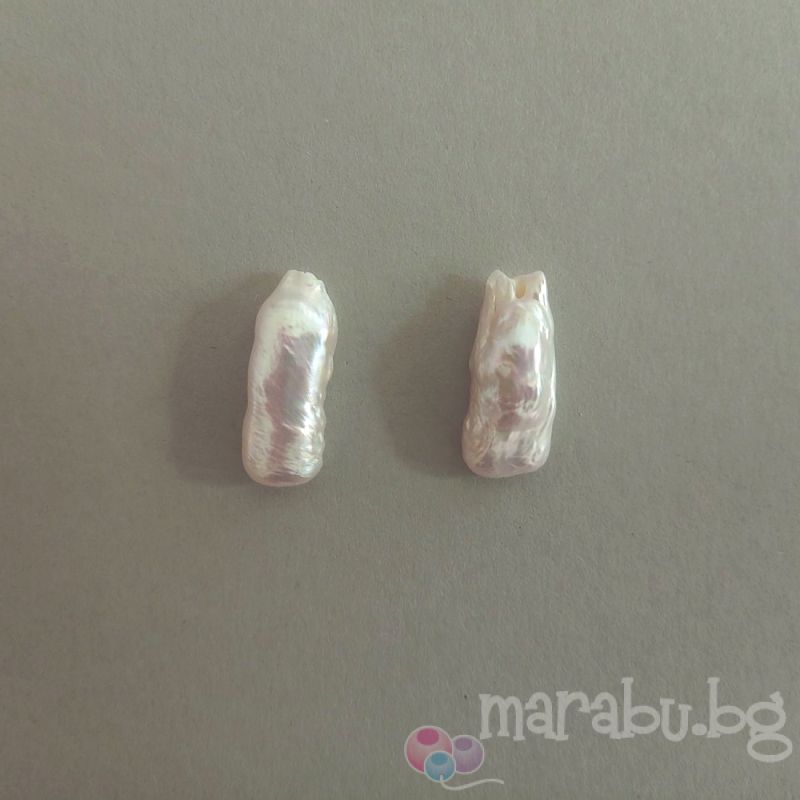 Естествени сладководни перли, Цвят: бял натурален, Материал: естествени перли, Форма: неправилна, продълговата, Baroque, Размер: приблизително 20- 6-7 мм, Посочената цена е за опаковка от 2 броя.