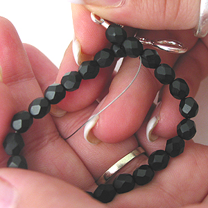 Нанижете 1-2 мъниста върху двойната тел, след което отрежете остатъка, колкото е възможно по-близо до последното нанизано мънисто.