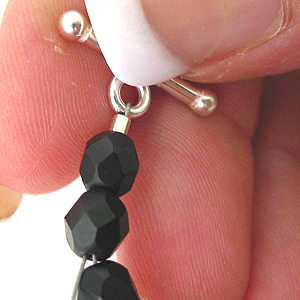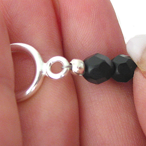 Сега може да нанижете желания от вас модел до край, след което поставете стопер и другата част на закопчалката. Върнете телта отново през стопера и през 2-3 мъниста. Издърпайте края на телта и плъзнете стопера, възможно най-близо до закопчалката.