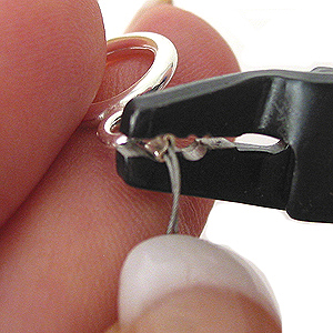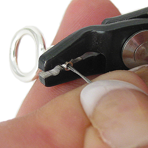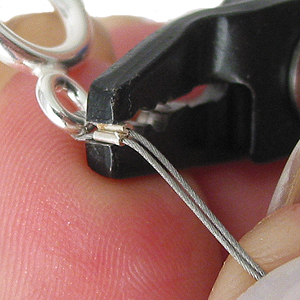 Сега с помощта на върха на клещите за затваряне на стопери или с клещи с плоски челюсти, натиснете отново, за да оформите и заздравите стопера. Може да се уверите в здравината на композицията, като дръпнете телта няколко пъти.
