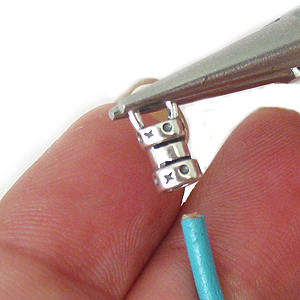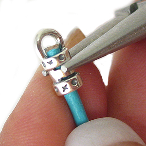 Хванете закопчалката с клещите с обли челюсти и я нанижете на кожата.