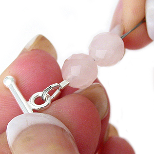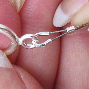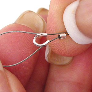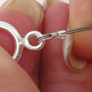 След като сте решили каква ще е дължината на желаната от вас гривна или огърлица, отрежете тел като добавите 8-10 сантиметра допълнително. Нанижете стопер, след което прекарайте телта през предпазителя.