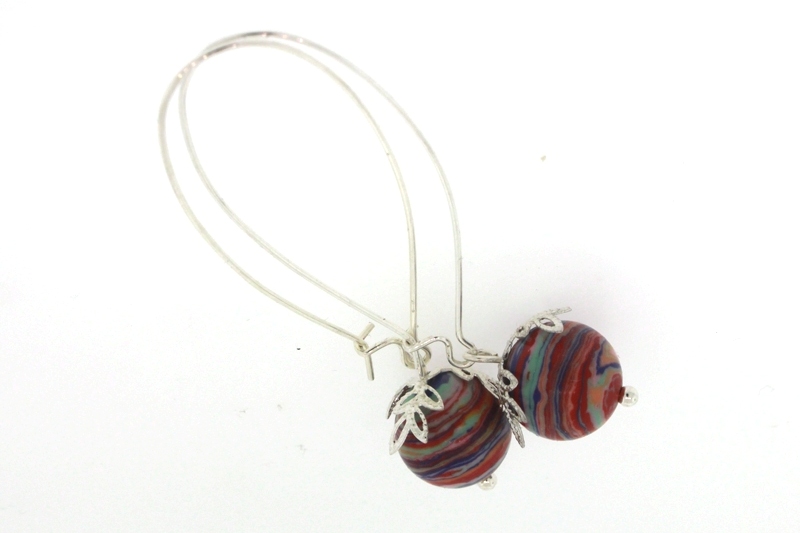 1. Нанижете на телче с главичка топче 1 мънисто от малахит и 1 капаче за мъниста. Следвайте указанията във Виртуалното ателие на Marabu.bg и оформете уше.