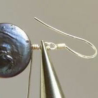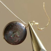Извадете клещите от така оформената примка и нанижете съответния аксесоар, който ще използвате (кукички за обици, халкички, верижка или друг метален елемент). Хванете образувалата се примка с клещите с плоски челюсти по начина показана на снимката.
