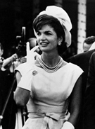 ![]() | Жаклин Кенеди остава в историята като символ на изискания вкус. Това семпло колие, изработено от розови перли нанизани на специална копринена нишка с фини възелчета, предпазващи крехките красавици от нараняване успешно въплъщава нейната елегантност. | ![]() |