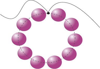 Нанижете четен брой мъниста, за да изравните желаната окръжност. Завържете двата края на нишката, като оставите леко хлабаво.