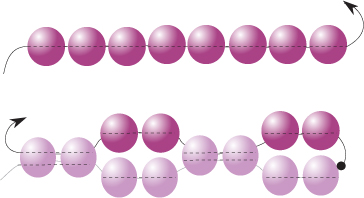 Тази плетка е като бримка Peyote, но всяка двойка мъниста се изработва все едно е едно мънисто.